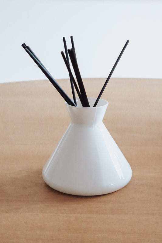 Simple à utiliser et tout en finesse, il libère lentement les notes choisies grâce aux tiges de roseau qui absorbent et diffusent la fragrance dans l’air ambiant. Idéal pour parfumer une pièce de façon constante, sans effort.
